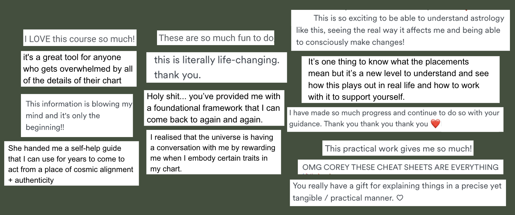 You'll also have access to my legendary cheat sheets that translate your signs, houses + planets into actionable cheat codes that realign your real life experiences.